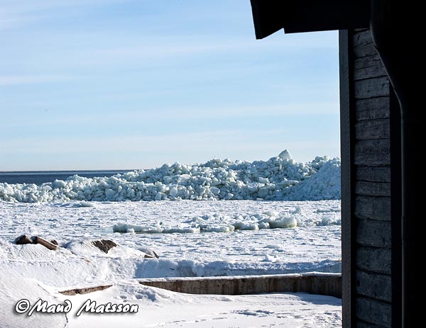 Ice piling up on the shallows outside Grisslehamn as a result from a storm