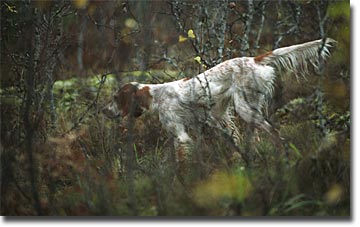 The little dog was lucky to find still another bird in some thick bushes. She was very concentrated now, she thought that I must do my part well now so that I can give my hunter the best possible changes to hit the bird when she want me to flush it.