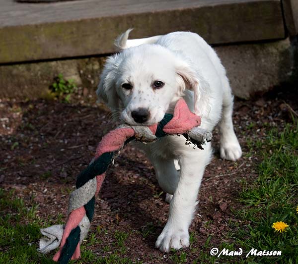 21/5 -11 Rospiga har börjat inventera leksakerna i sitt nya hem