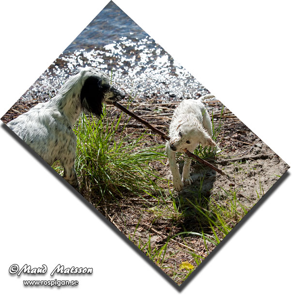 Lärka och jag har dragkamp på stranden...