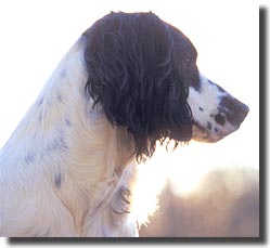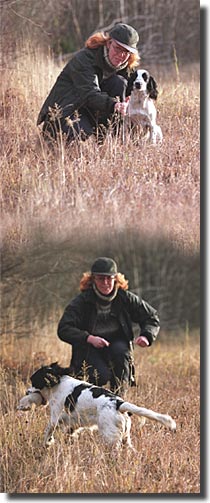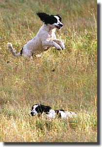 What else is there to say about her? Well, we have tested her once with partridge but she got so excited from the find and flush so we thought we better leave that kind of training until later, when she is more mature to take the excitement and less likely to be screwed up by it. She also gets excited by seeing the setters hunt and I guess that is all of hunting experience she needs right now. Obedience and fetch training is good enough for the time being. Both exercises will improve contact and contact is what really is needed in the future if we are to show the world how a spaniel should be run! The very strange fear for different objects she still had a few months ago is slowly fading away. Research has shown that it is impossible to predict the behavior of a mature dog from its behavior as a puppy. It is suggested that there could be different genes for the puppy behavior and for the behavior of the mature dog. I am by now very ready to believe that theory!